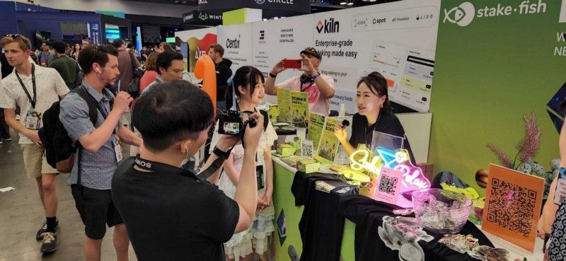 stakefish, Blockdaemon, Figment, Kiln, Staked.us, and Cosmostation were among validators represented at the event. Most notable were the stakefish “social vending machines” around the show floor, prompting users to tweet in exchange for from the vending machine.