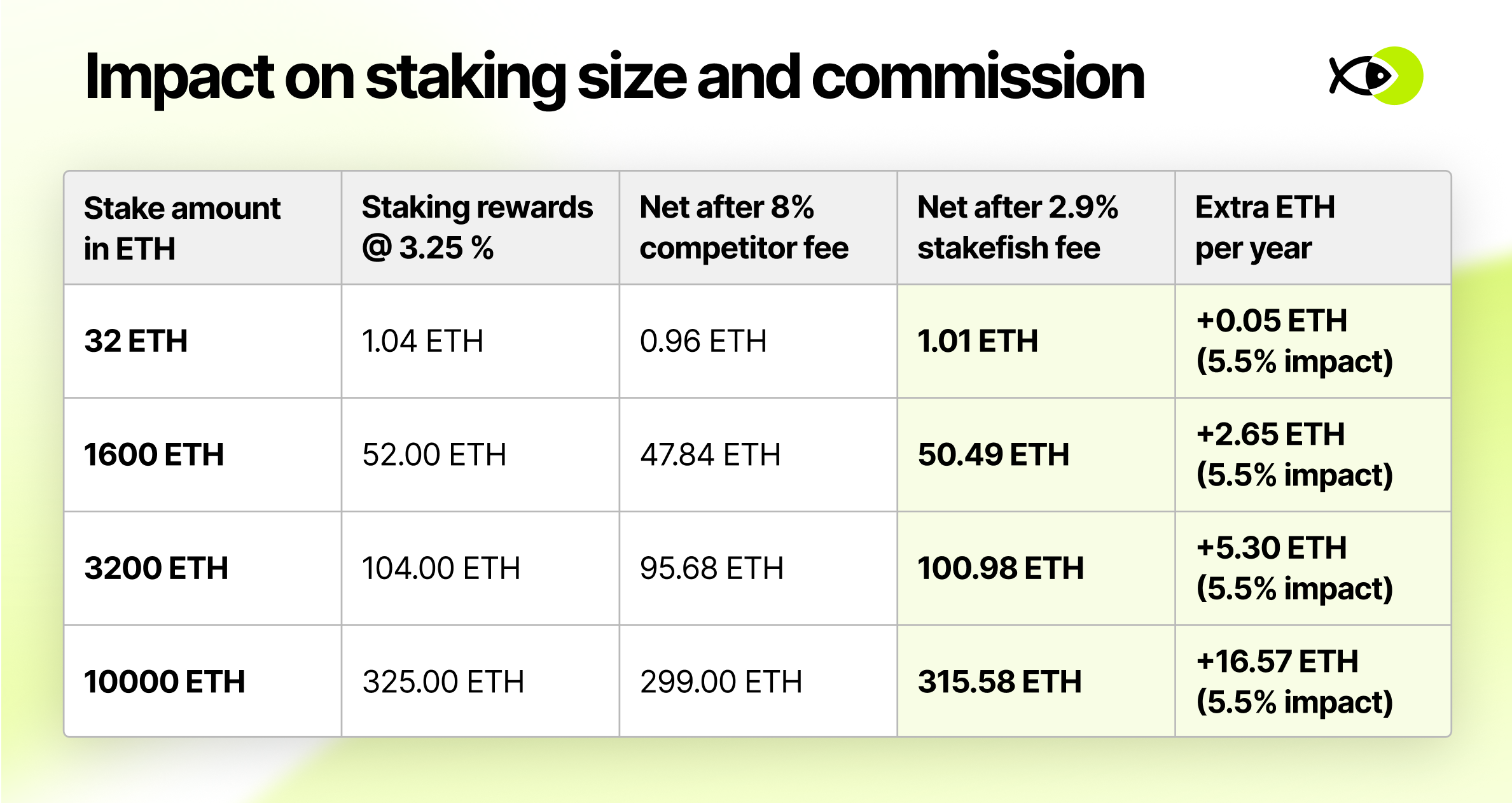 How stakefish delivers higher ETH returns: save 60% on Ethereum staking fees