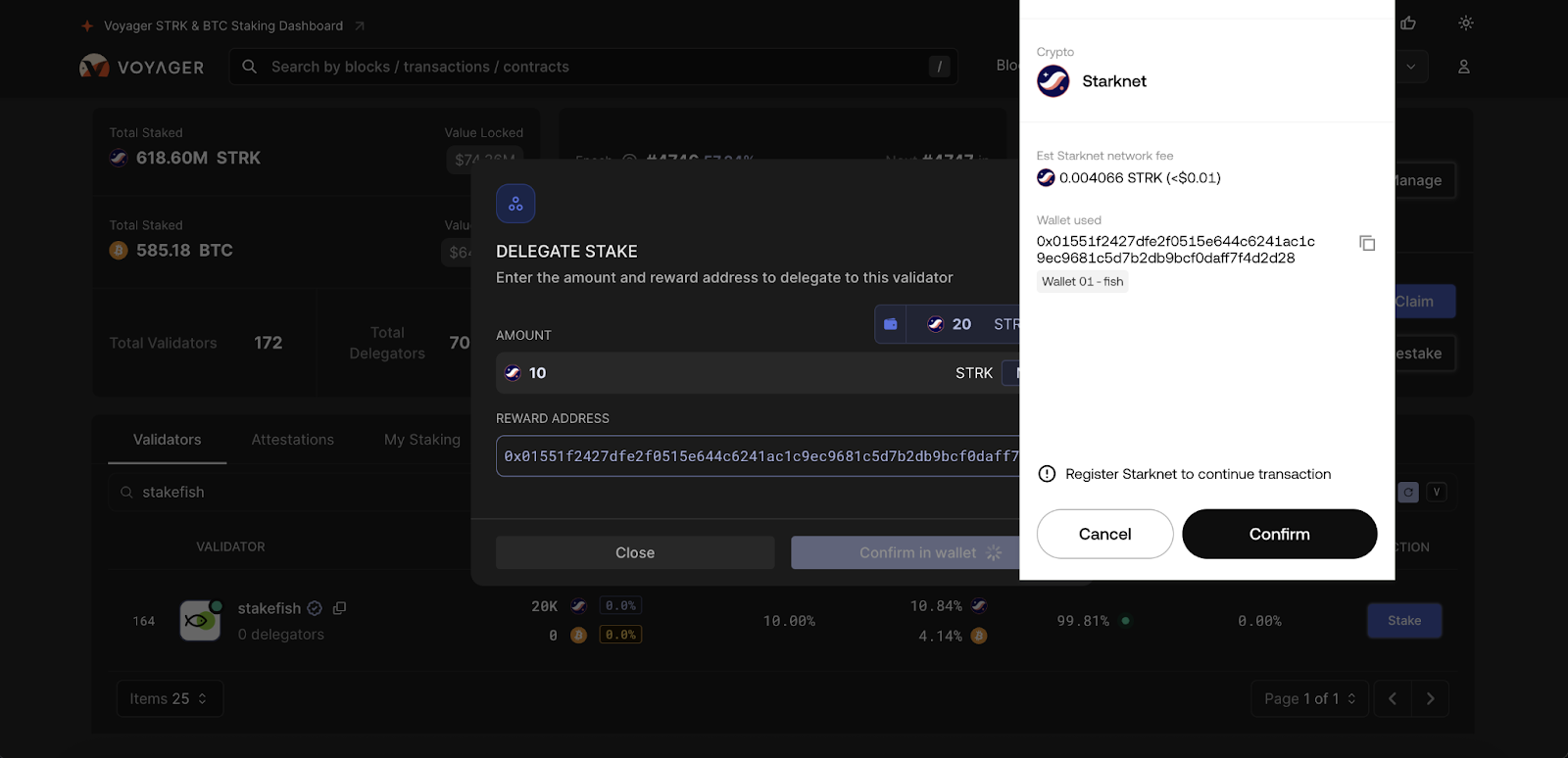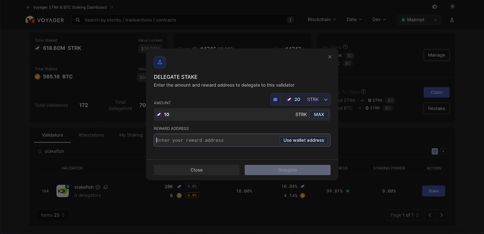 Staking STRK with stakefish ensures reliable rewards, low commission rates, and robust network security—ideal for both new and experienced delegators.
