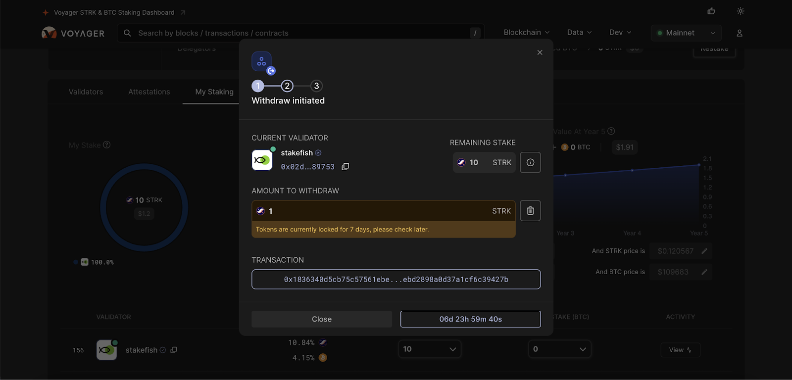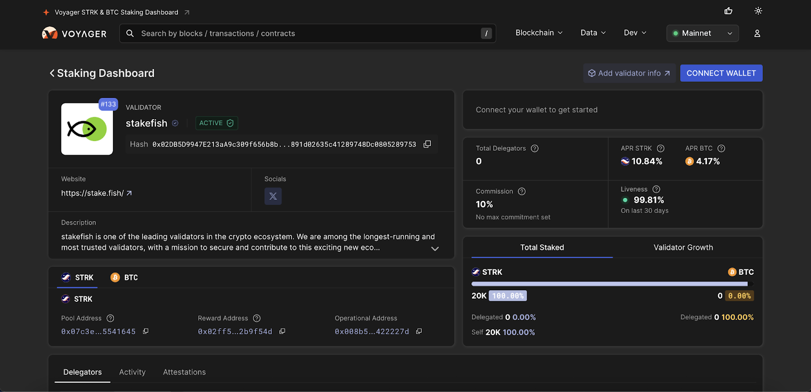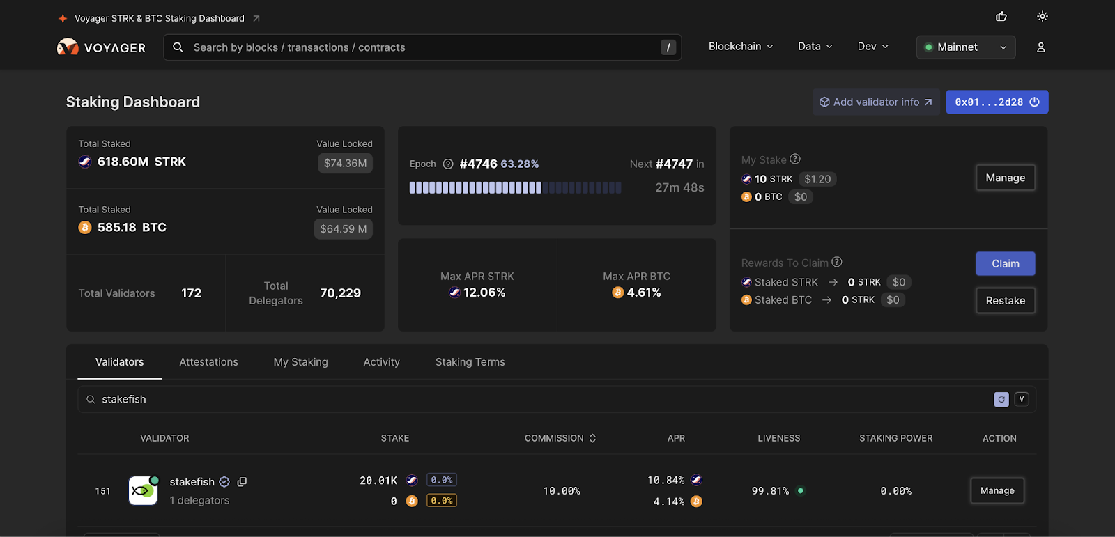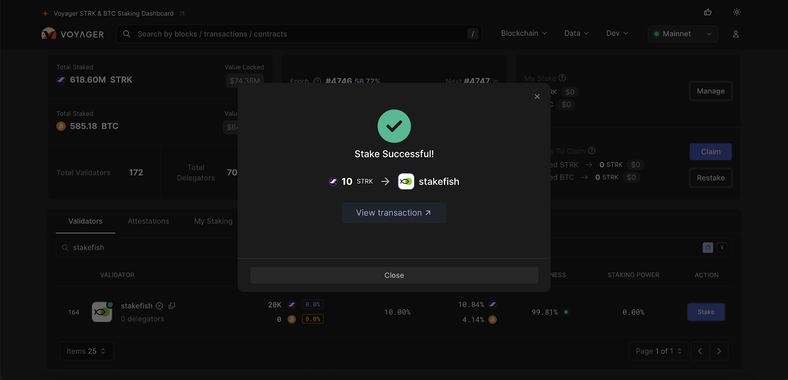 8. Now you are staking with stakefish. And your STRK stake will start generating staking rewards.