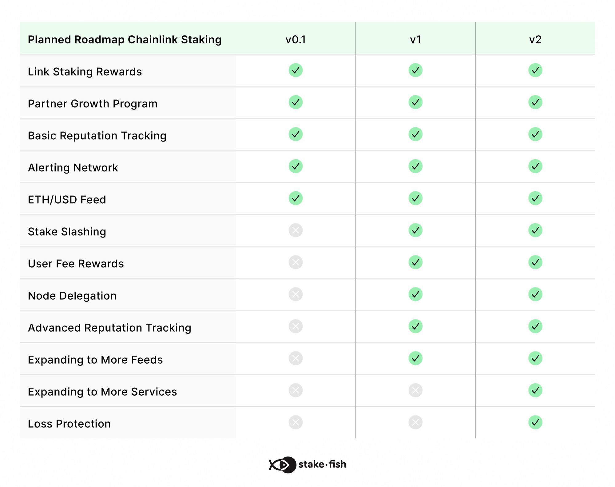 The below roadmap reflects an overview of the planned approach to rolling out some of the key functionalities of Chainlink staking across multiple versions.