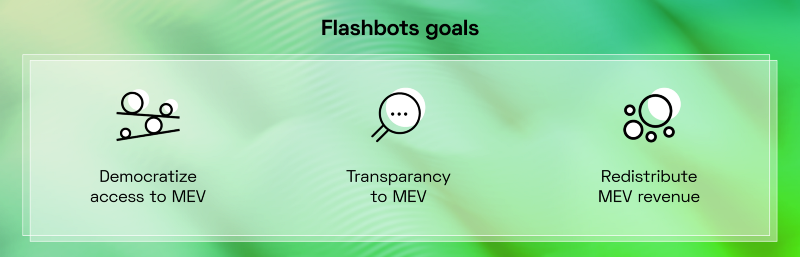 Flashbots arrived on the scene as the white knight with three stated goals: democratize access to MEV, bring transparency to MEV, and redistribute MEV revenue. They have been shipping dashboards and educational materials to raise awareness around this topic. But, most importantly, they built mev-geth, which distinguished the roles of searchers (block builders) and miners (block proposers) and how they interact with each other. Searchers look for MEV opportunities and forward them as bundles to miners. Miners include the bundles provided by the searchers into new blocks. During this exchange, searchers share a portion of the MEV revenue with the miners to incentivize them to faithfully include bundles into blocks.